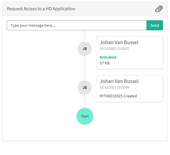 On the left of the screen, you will find a timeline of the handling your request, starting with your creation.