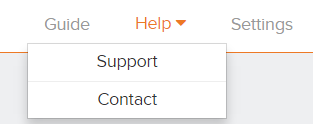 In het 'Hulp' menu kunt u kiezen uit de volgende onderwerpen: 'Support' en 'Contact'.