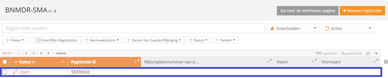 • Selecteer het register om een registratie te creëren.