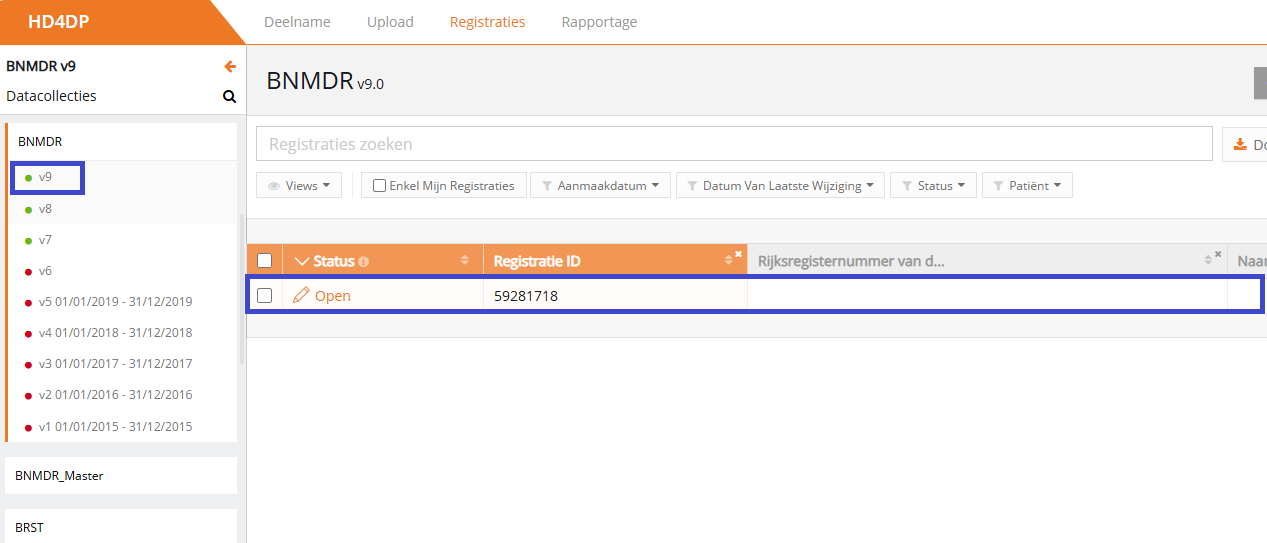 - Klik op de registratie die moet worden gewijzigd, en vul het formulier volledig in. De status van de record is dan:
