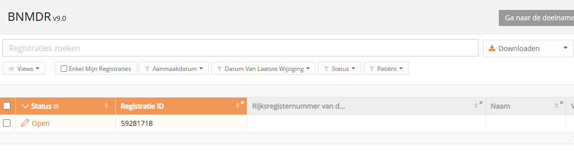 - Selecteer het register waarvan u een of meer registraties wenst te wijzigen
