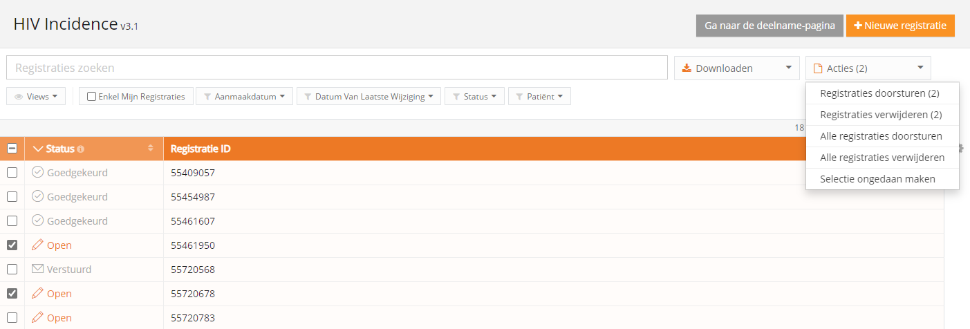 - Open voor registraties die handmatig werden opgeslagen of door een csv-bestand up te loaden