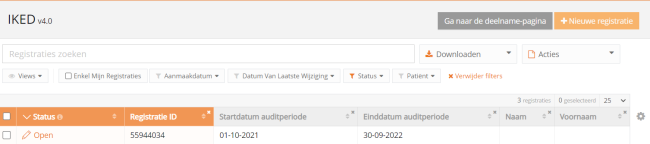 - Open voor registraties die handmatig werden opgeslagen of door een csv-bestand up te loaden