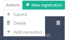 Er worden drie opties weergegeven: "Registraties verzenden" en "Registraties verwijderen" en "Correctie toevoegen". Enkel de optie "Correctie toevoegen" is beschikbaar voor verzonden registraties. Druk nu op "Correctie toevoegen".