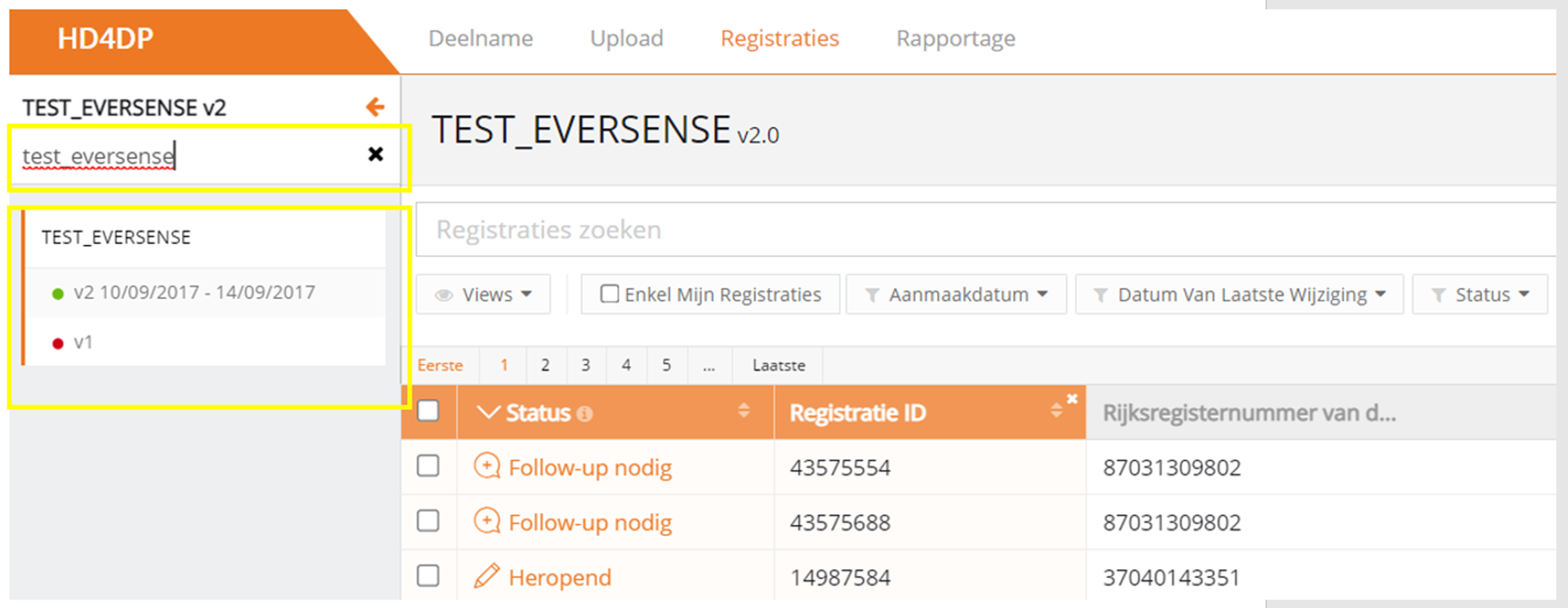 - Selecteer de juiste versie van het register. In geval van verschillende versies/periodes, selecteer degene met het groene bolletje
