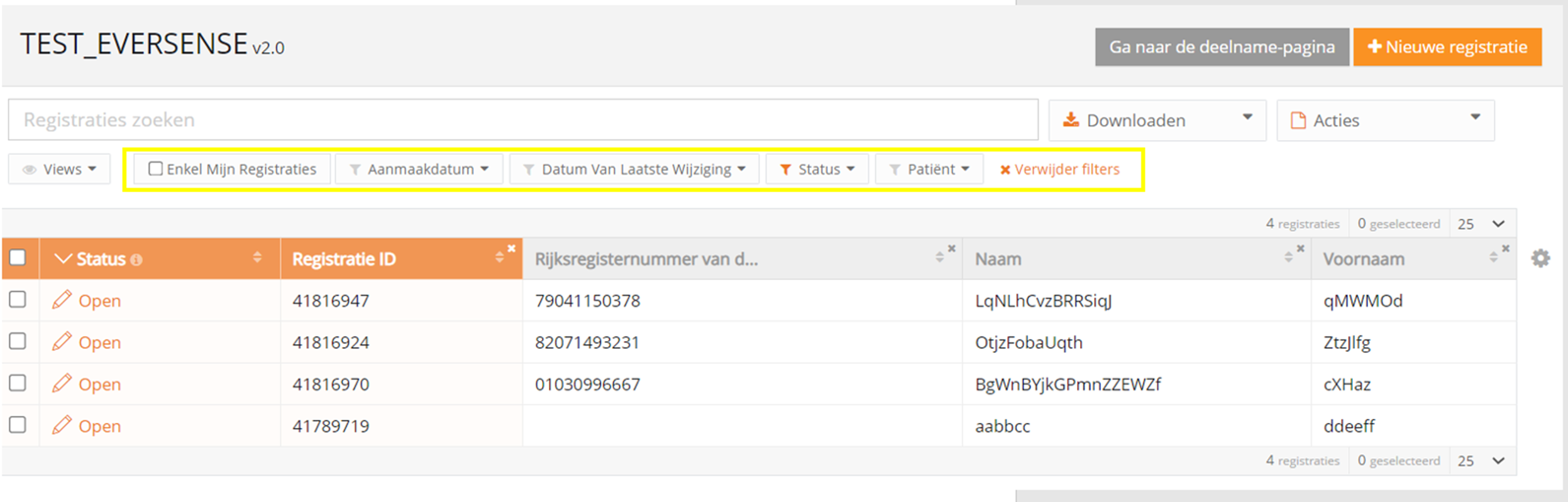 Klik op 'Verwijder filters' om alle registraties opnieuw weer te geven.