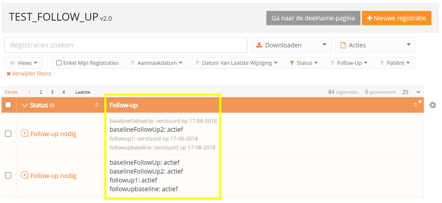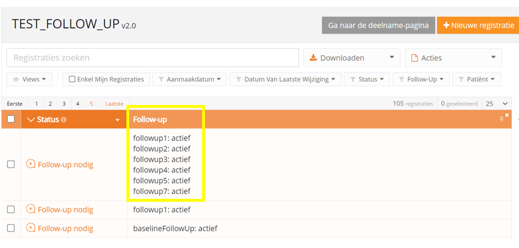 Registraties met status 'Follow-up nodig'