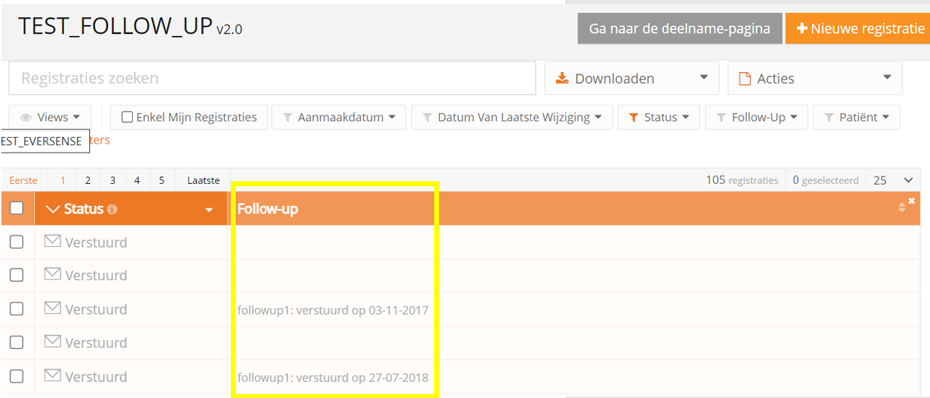 Registraties met status 'Follow-up nodig'