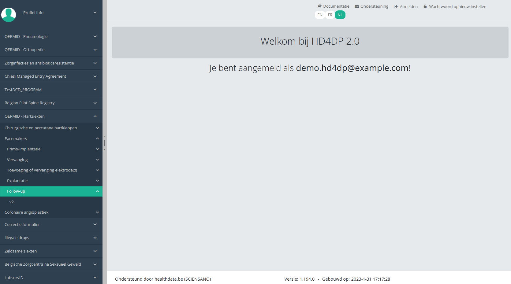Deze documentatie wordt regelmatig bijgewerkt. We proberen de informatie zo correct, volledig en zo duidelijk mogelijk weer te geven. Als u desondanks iets in de documentatie ziet dat niet correct is, niet overeenkomt met uw ervaring, of verdere verduidelijking vereist, maak dan een support ticket via ons portaal (https://healthdatabe.atlassian.net/servicedesk/customer/portals) of stuur ons een e-mail via support.healthdata@sciensano.be om dit documentatieprobleem te melden. Vergeet niet de URL of het webadres van de pagina met het documentatieprobleem te vermelden. Wij zullen de documentatie dan aanpassen. Bedankt!