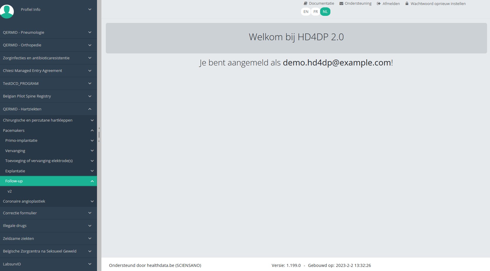Deze documentatie wordt regelmatig bijgewerkt. We proberen de informatie zo correct, volledig en zo duidelijk mogelijk weer te geven. Als u desondanks iets in de documentatie ziet dat niet correct is, niet overeenkomt met uw ervaring, of verdere verduidelijking vereist, maak dan een support ticket via ons portaal (https://healthdatabe.atlassian.net/servicedesk/customer/portals) of stuur ons een e-mail via support.healthdata@sciensano.be om dit documentatieprobleem te melden. Vergeet niet de URL of het webadres van de pagina met het documentatieprobleem te vermelden. Wij zullen de documentatie dan aanpassen. Bedankt!