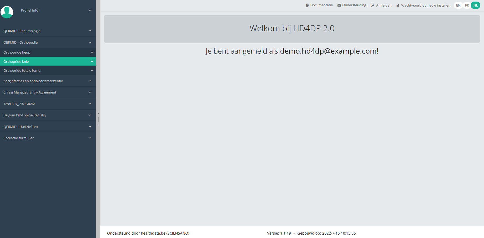 Wanneer u het studieprogramma QERMID Orthopedie selecteert, ziet u de studieprojecten Orthopride Hip, Orthopride Knee en Orthopride Megaprotheses.