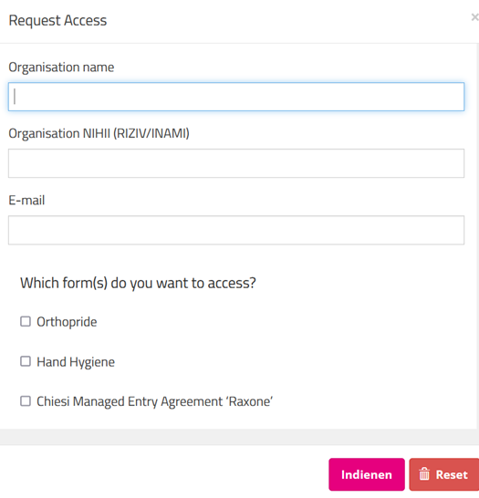 Nadat u met succes toegang tot een formulier hebt aangevraagd, wordt u gecontacteerd door healthdata.be support. Zij zullen u een tokencode geven die u kunt gebruiken om toegang te krijgen tot het gevraagde formulier.