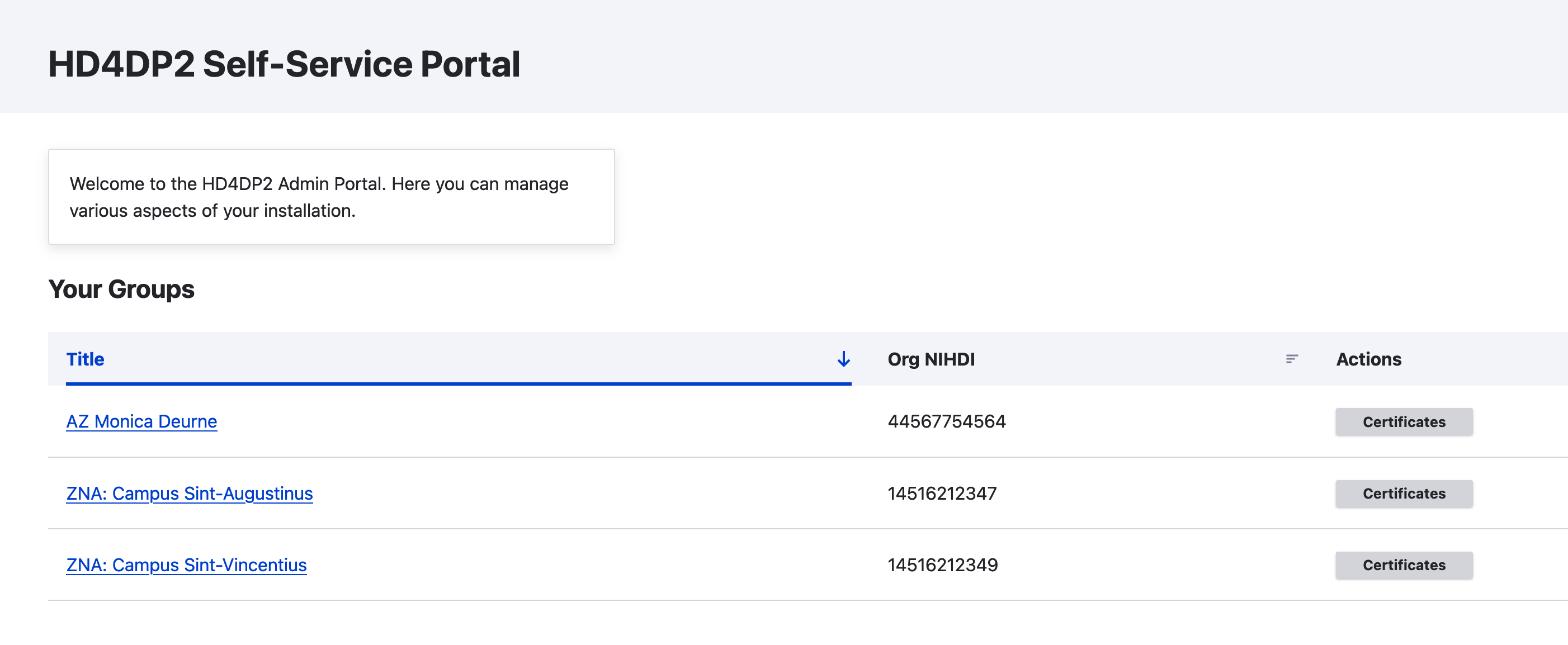 A user whom has been given the role of Certificate Editor can add a new p12 certificate to an organization. If you have a user with that specific role, you can easily get to the overview per organization on the homepage.