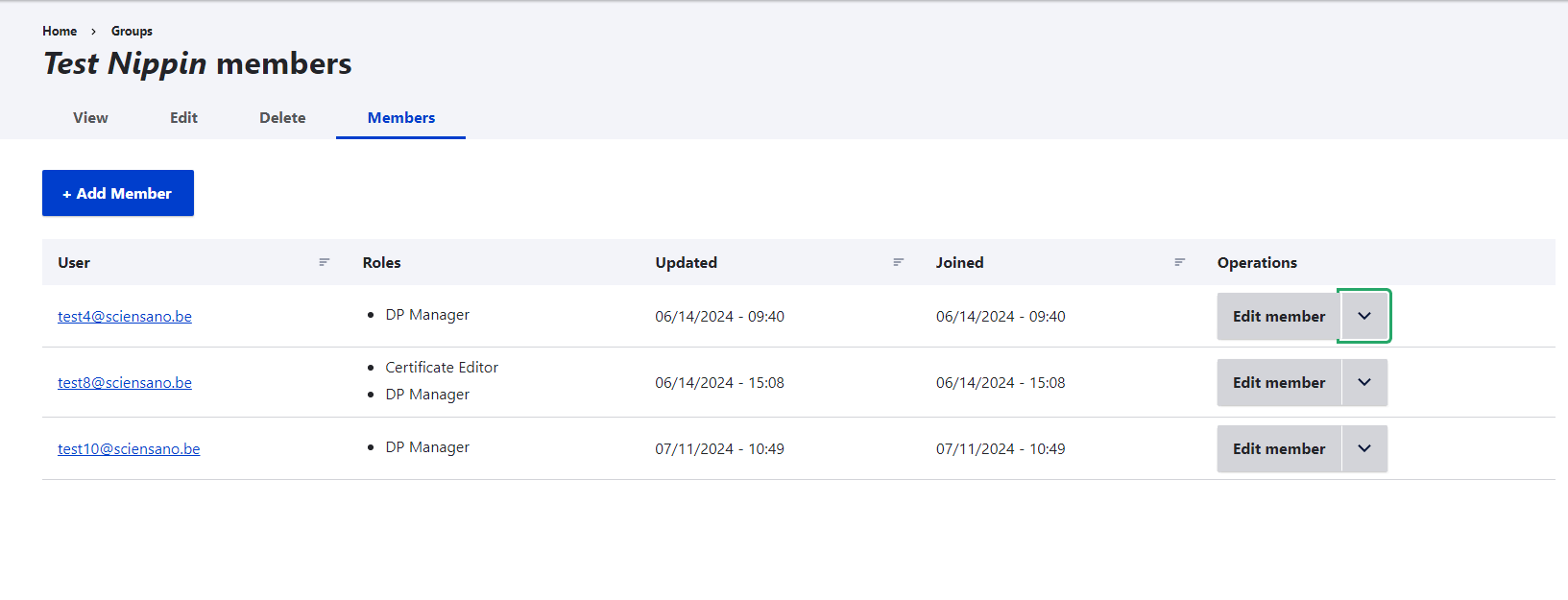 In order to edit member roles, you go to Home and then Groups to have an overview of all Organizations (Groups).