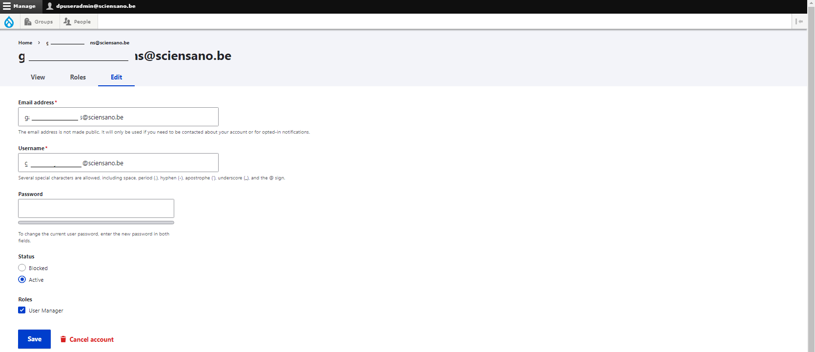 Click on the Save button to carry out the change.