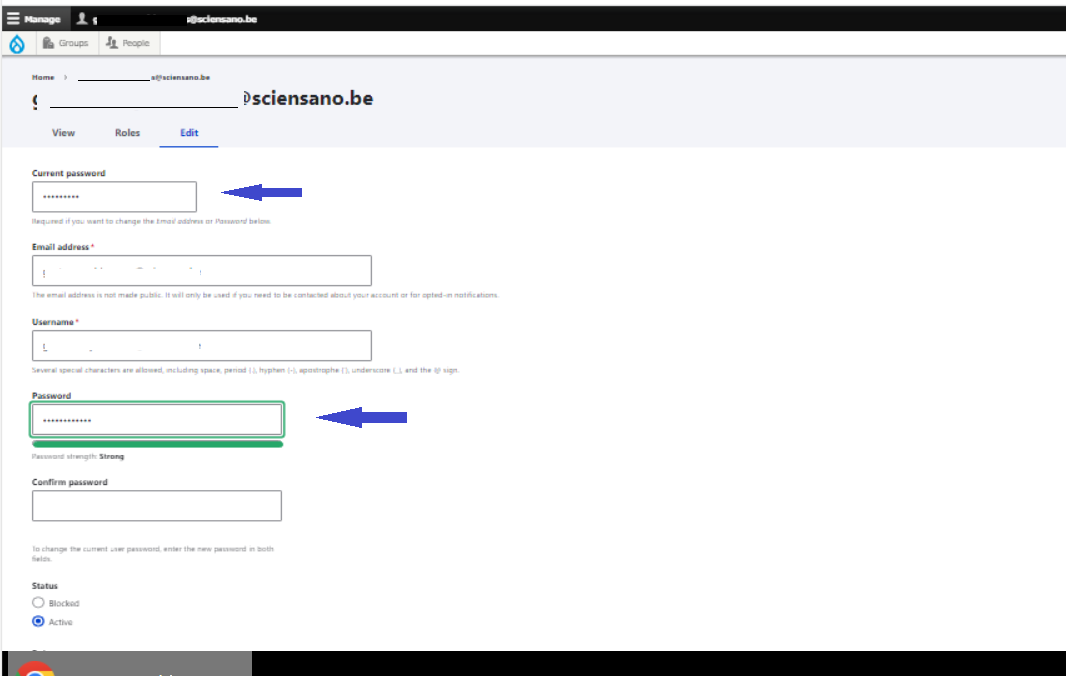 Complete the form below with your current password, your details and the new password. Repeat the new password to confirm it. (The second password field only appears, when you start to type the new password.)