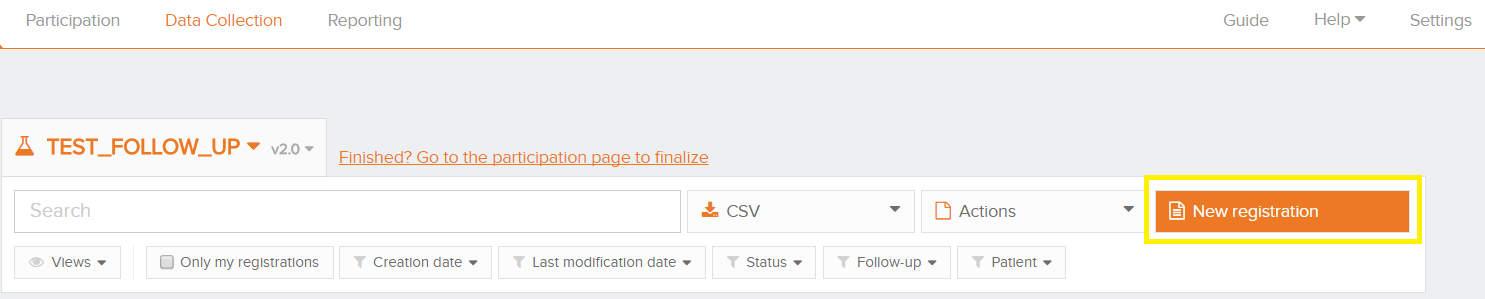 The Data Collection view leads a user to the existing registers. A user can start collecting data from this view.