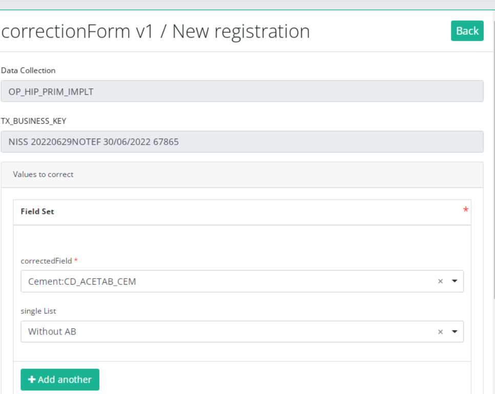 The number of fields to correct in the same correction registration is limited to three. You can add another field to correct by clicking on "Add another " button.