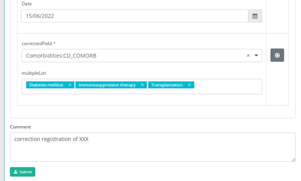 When you finish filling the correction registration, you can add a comment and send the correction by clicking on "submit" button.