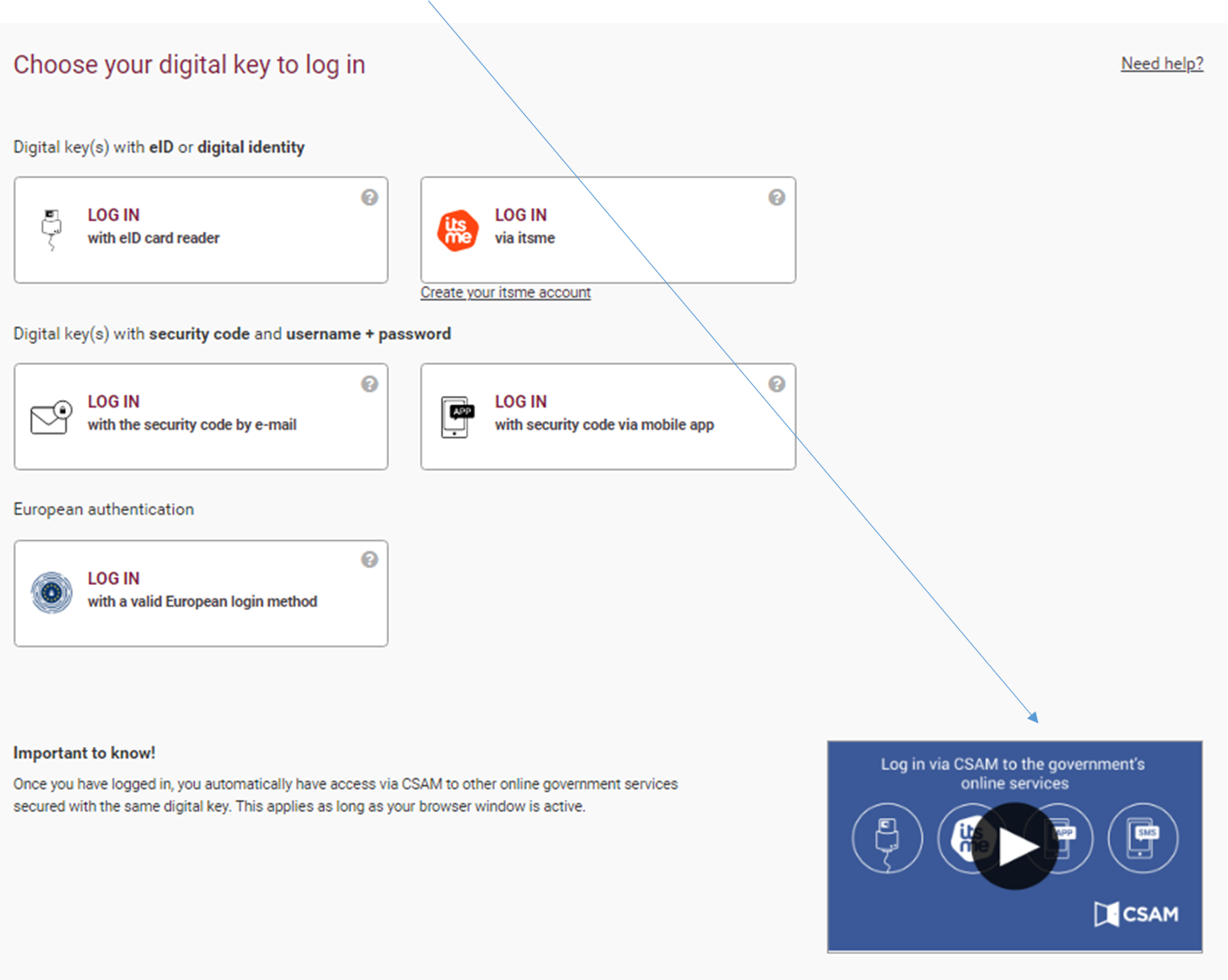 Login via ITSME (video of 2 minutes available)
