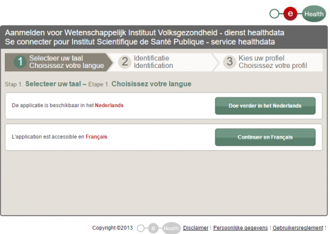 Once the link is accessed, you are automatically forwarded to the eHealth platform where you should authenticate using your eID. On the first screen select the language.