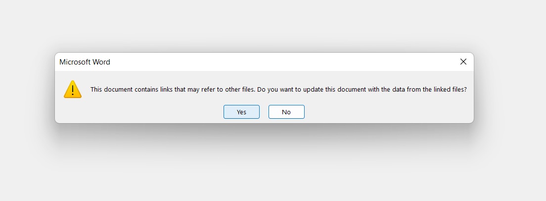 For Word documents - click "Yes" to update the links