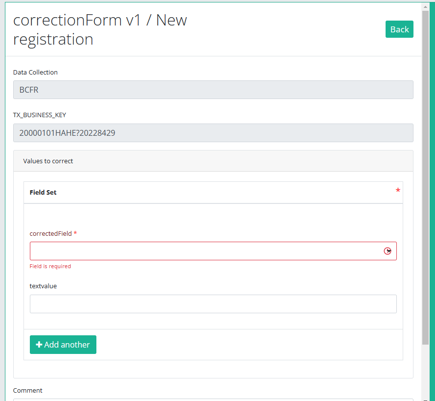 The number of fields to correct in the same correction registration is limited to three. You can add another field to correct by clicking on "Add another".