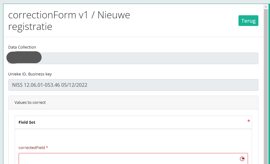 Some fields are automatically filled with values of original registration, like :"Data collection " and "Business_KEY" .