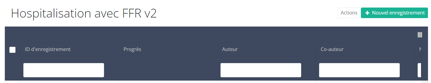 To find a Hospitalisation with FFR registration for the study project ANGIO select "Hospitalisation with FFR" in the dark blue left menu.