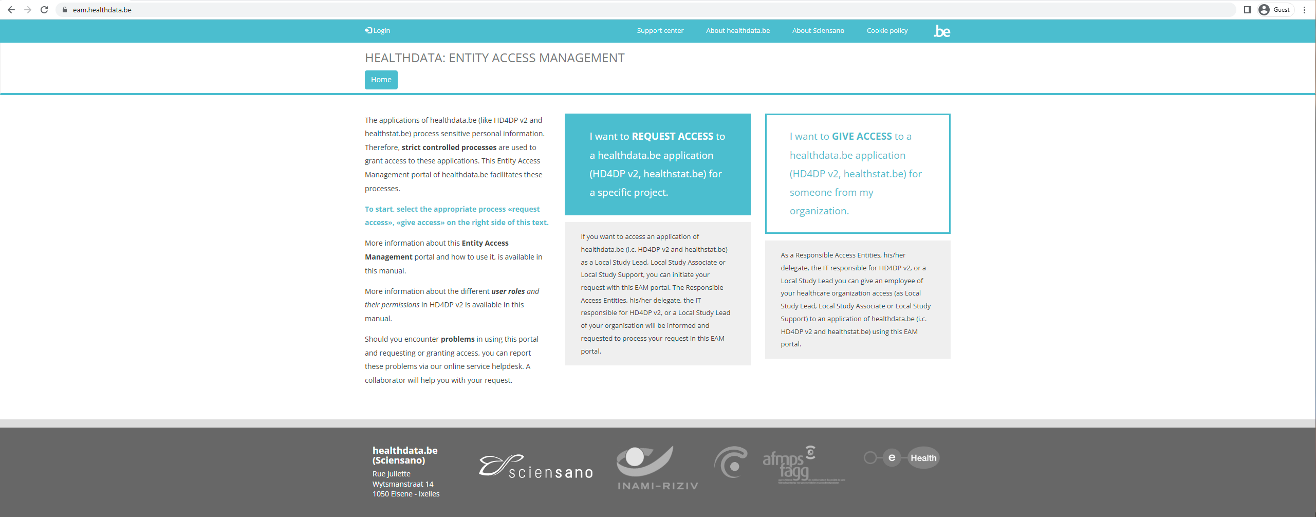 The applications of healthdata.be (like HD4DP v2 and healthstat.be) process sensitive personal information. Therefore, strict controlled processes are used to grant access to these applications. The Entity Access Management (EAM) portal of healthdata.be facilitates these processes. In this article we describe how to use it.