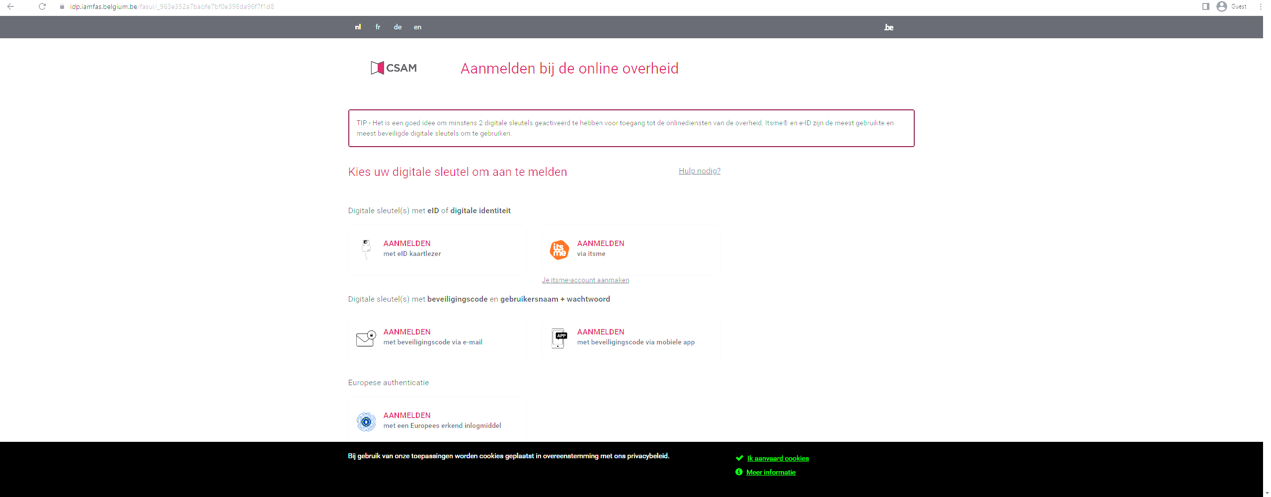 First, navigate towards the EAM application via the following url: https://eam.healthdata.be