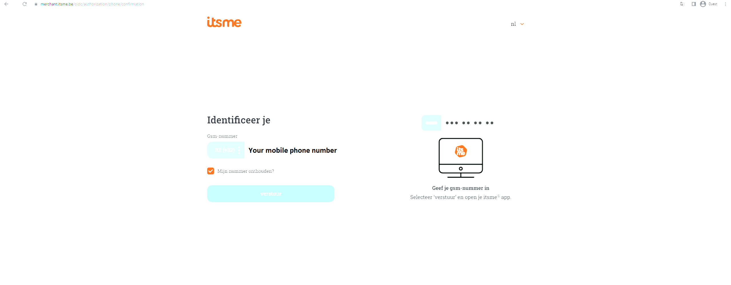 Follow the instructions on your mobile device via the ItsMe application.