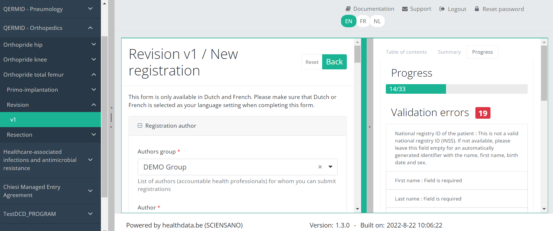 By completing the study form, you will create a "Revision" registration for the study project Orthopride total femur.