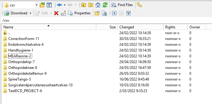 The csv files will be placed in the folders of the DCD which we want to upload. We double click on the folder of the dcd and the structure will be either empty, whether filled with folders containing the following names: