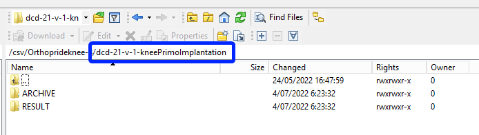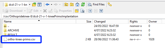 I want to upload an Orthopride Knee Primo-Implantation DCD, so I will place the csv file into the dcd-21-v-1-kneePrimoImplantation folder: