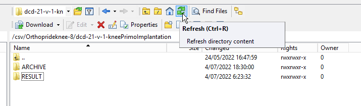 - Wait until the file has been processed (the file will disappear from this folder if it has been processed - don't forget to click on the refresh button)