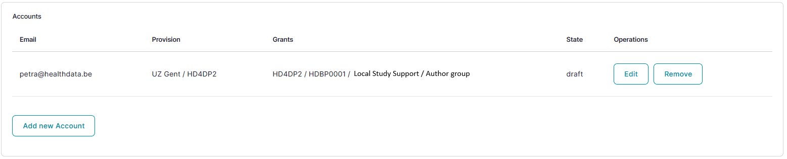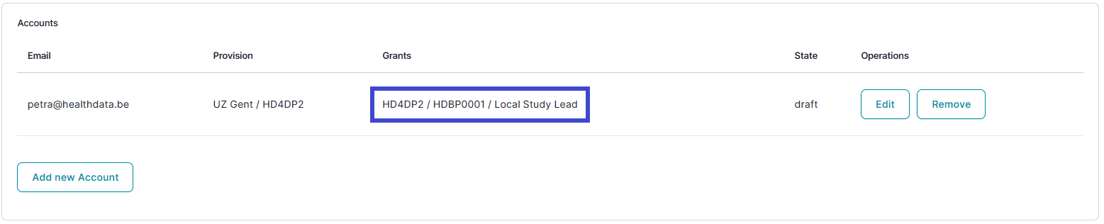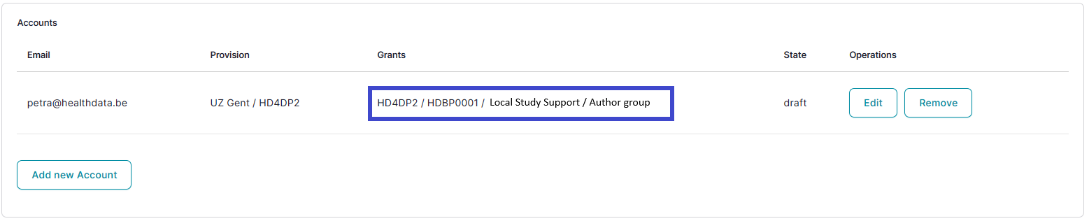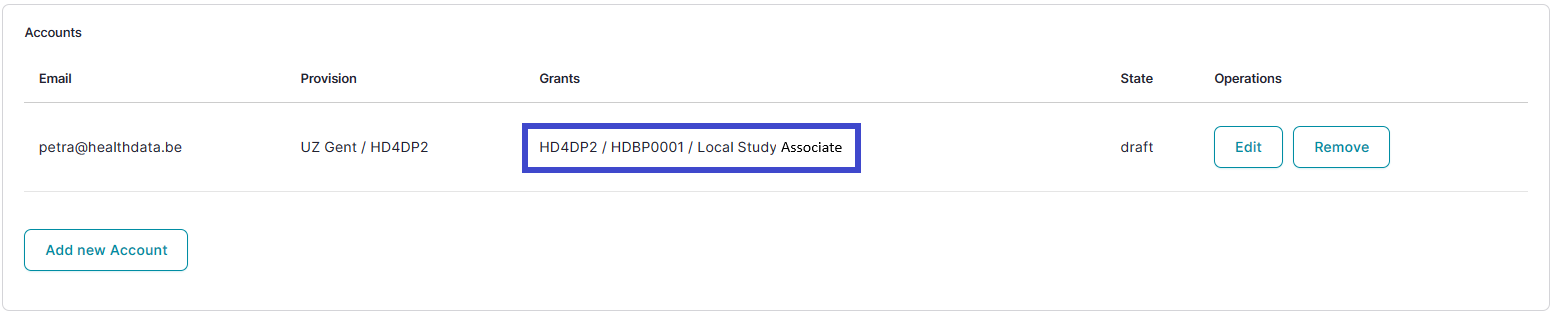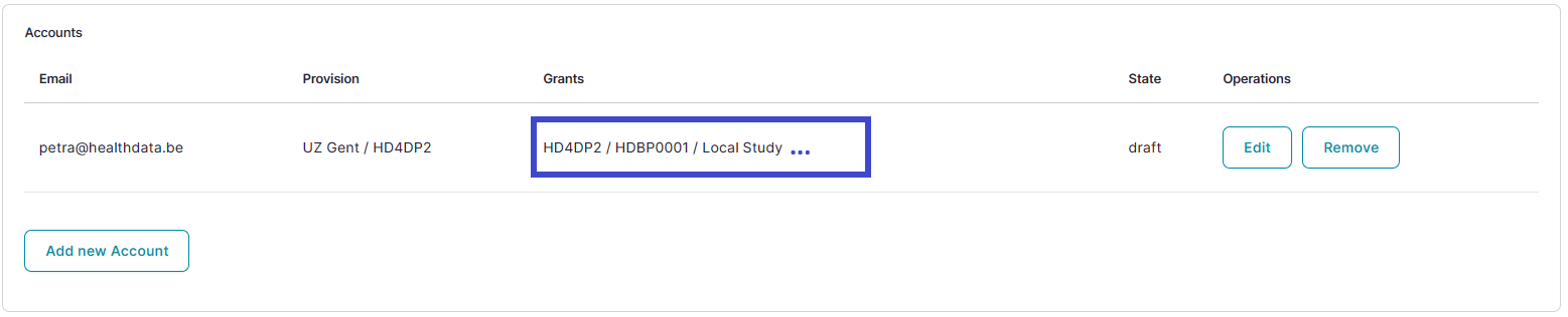Then, select the Update account button in the Edit Account window and return to the Accounts tab to find the added Access grant as follows: