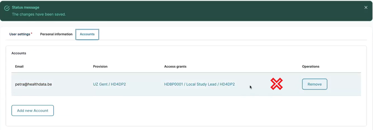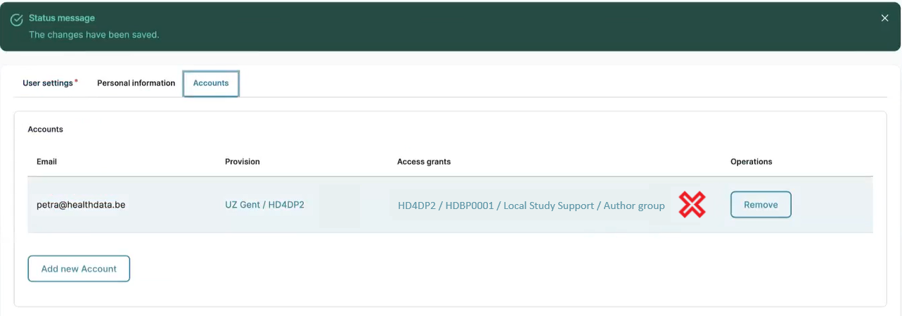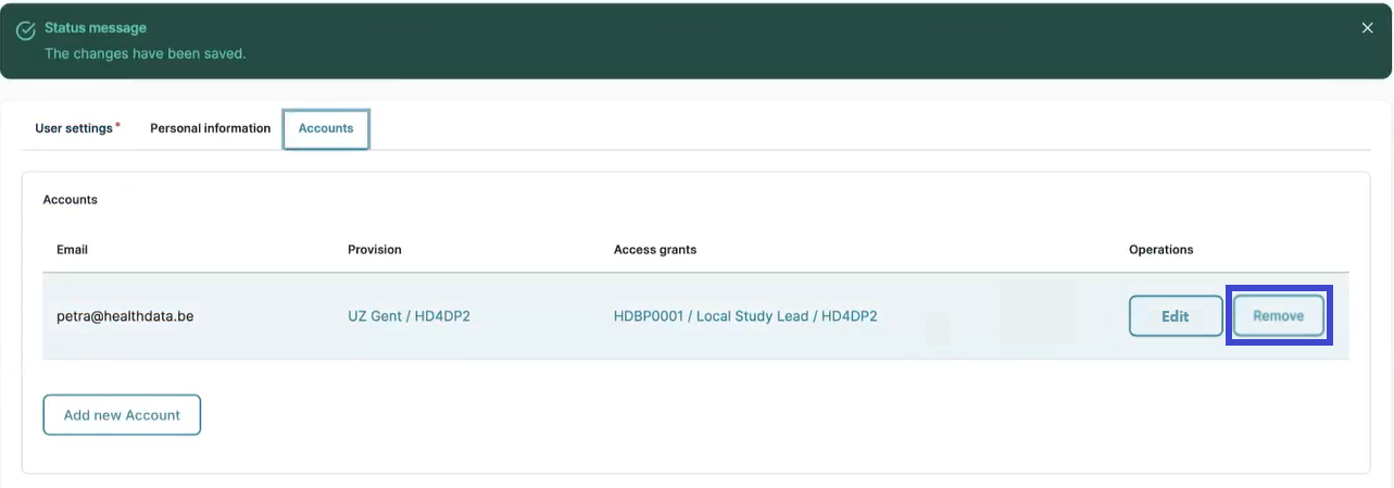When you afterwards decide that the approved account is not relevant for a reason, you can remove it by clicking on the Remove button twice in a row.
