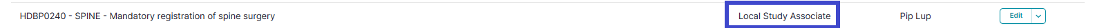 Change the role from Local Study Associate to Local Study Support and click on the Save button.