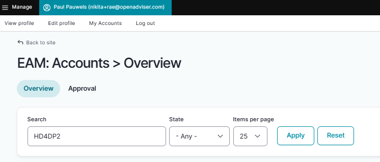 The account state immediately changes to Approved, which will again be visible in the EAM accounts overview.
