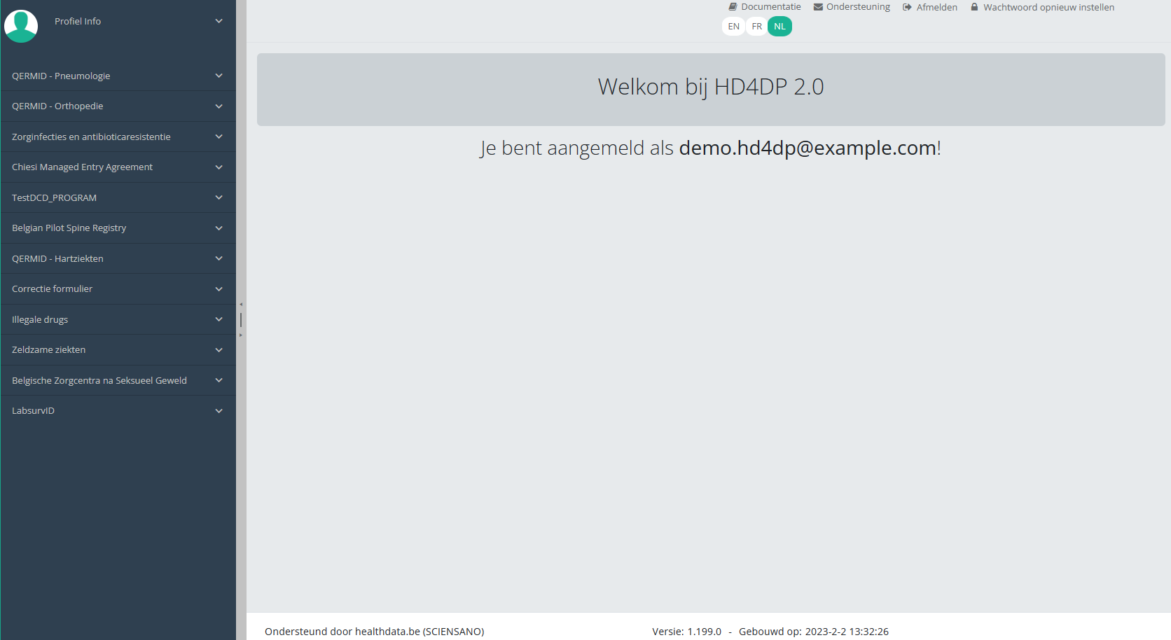 Deze documentatie wordt regelmatig bijgewerkt. We proberen de informatie zo correct, volledig en zo duidelijk mogelijk weer te geven. Als u desondanks iets in de documentatie ziet dat niet correct is, niet overeenkomt met uw ervaring, of verdere verduidelijking vereist, maak dan een support ticket via ons portaal (https://healthdatabe.atlassian.net/servicedesk/customer/portals) of stuur ons een e-mail via support.healthdata@sciensano.be om dit documentatieprobleem te melden. Vergeet niet de URL of het webadres van de pagina met het documentatieprobleem te vermelden. Wij zullen de documentatie dan aanpassen. Bedankt!