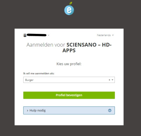 Once you have run through the ItsMe login procedure, you want to select the green confirmation button (available in FR and NL) in the screen below to access the Sciensano environment.