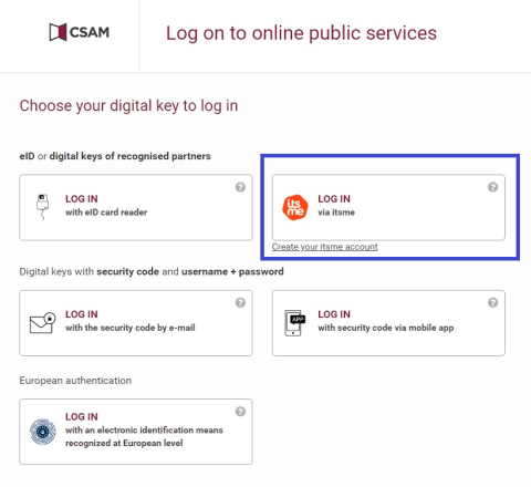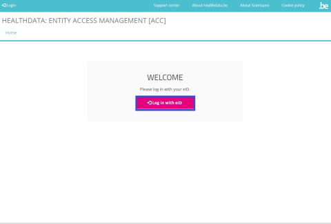 Enter the URL https://eam.healthdata.be in your internet browser to open the Entity Access Management landing page.