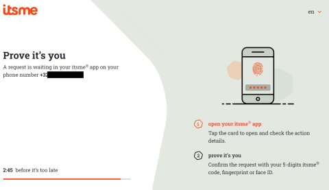 Follow the instructions on your mobile device via the ItsMe application.